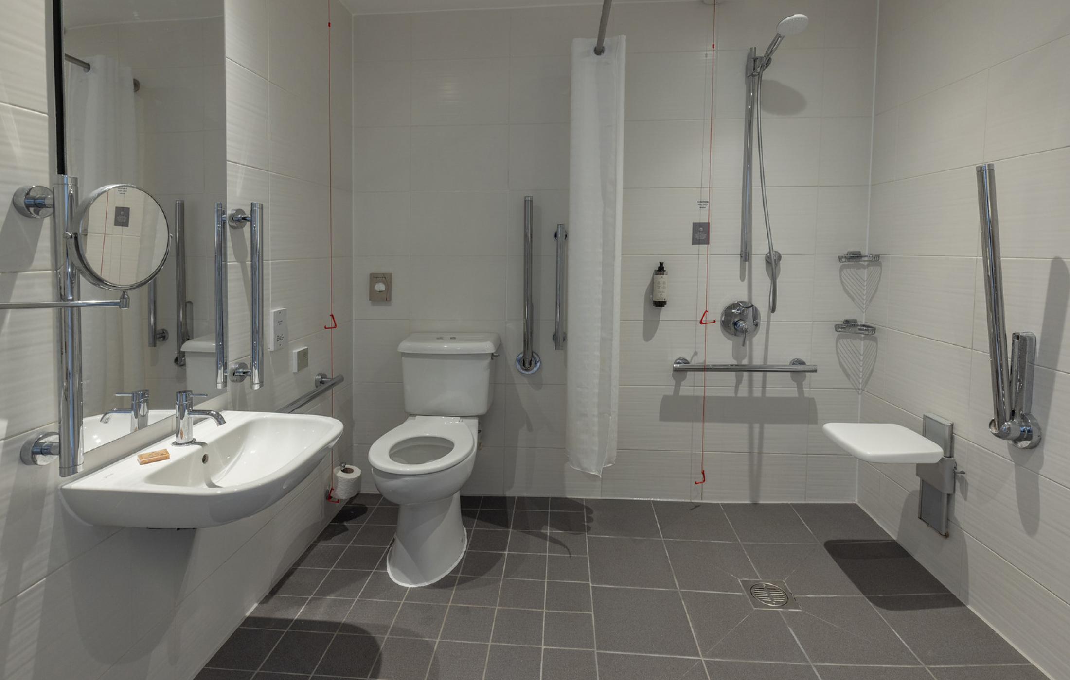 With extra space for easy wheelchair access, our specially adapted Accessible Rooms have all the essential comforts you need for a relaxing stay. They come with a queen bed and an en-suite wet room with roll-in shower and grab rails. Interconnecting rooms are also available.